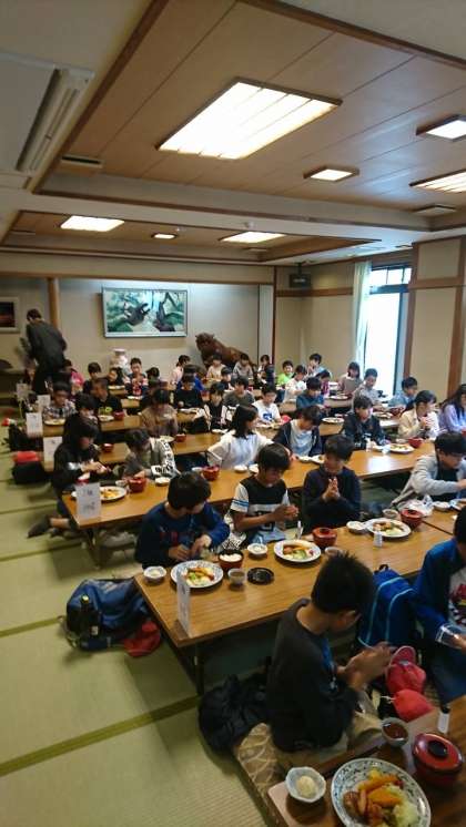子どもたちを乗せたバスは、お昼前に無事広島につきました。現在、昼食中です。