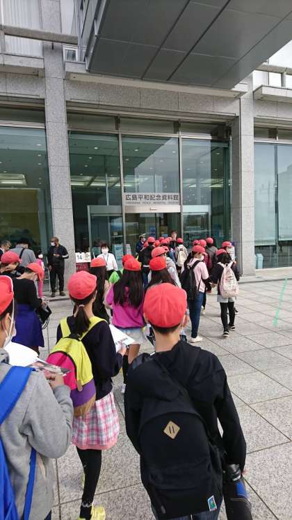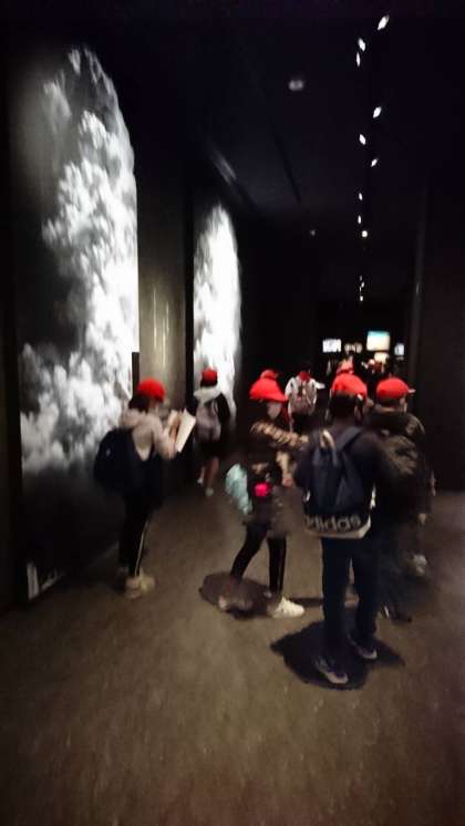平和集会、碑めぐりに続いて平和記念資料館の見学。2クラスずつ見学できることとなり、ひと安心です。報告集会での発表につながることと思います。