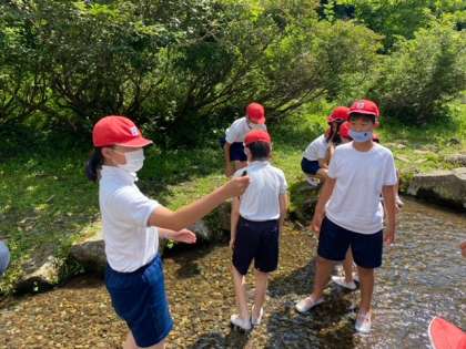 今日、最初の活動は魚つかみです。素早く泳ぐ魚を手づかみするのは大変ですが、子どもたちも負けてはいないようです。