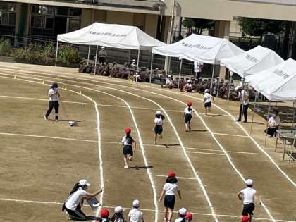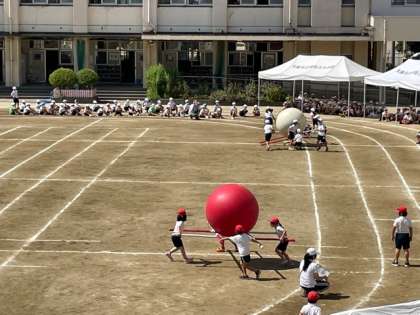 2年生の種目は「全力疾走」と「力を合わせて」でした。昨年度、運動会がなかったので小学生になって初めての運動会でした。「全力疾走」では、カーブを上手に抜けてスピードを落とさずに走ることができていました。「力を合わせて」では、4人一組なって井桁に組んだ棒の上に大玉を乗せ、一丸となって運んでいました。