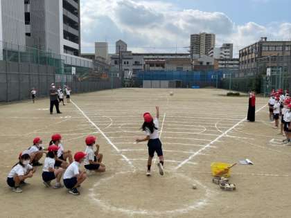 新体力テスト2日目は、3年生と4年生です。1・2時間目は、3年生。50m走は運動会前に測定しので、ソフトボール投げと立ち幅跳びの2種目を行いました。