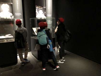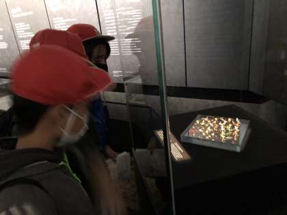 平和記念資料館の見学中です。みんな、真剣な表情で見学しているようです。学校で学習していったことに関する資料は特に興味をもって見学しているそうです。たくさんメモも取っているようなので、帰ってきてからの報告集会などが楽しみです。