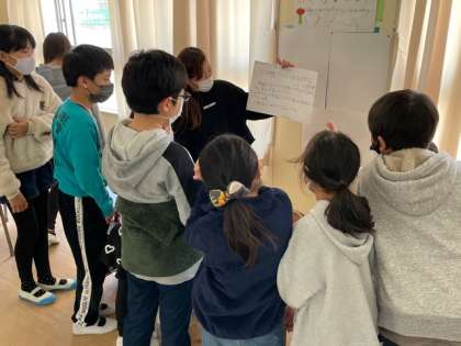 4組は「めざせ○×ネプリーグ王」。1分間でいくつ言えるかな、などいろいろな問題に答えながら正解数を競うゲームです。お題に合わせて、1年生から6年生までみんな楽しんでいました。
