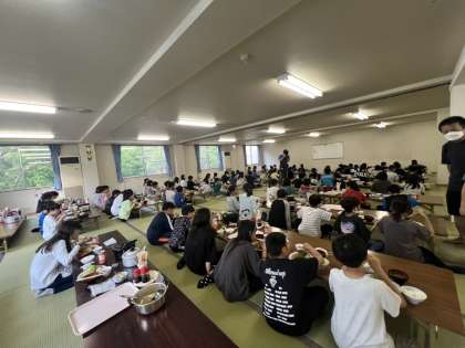 夕食です。今日一日たくさん身体を動かしたので、少しお疲れモードの子もいるようですが、しっかりと食べているそうです。