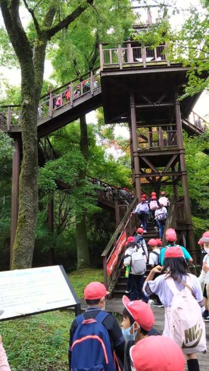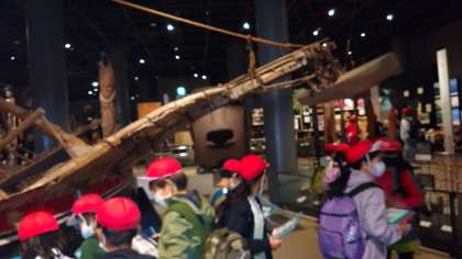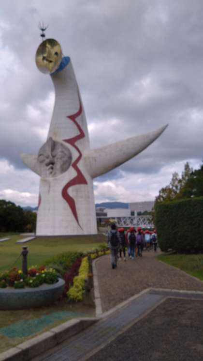 雨で延期になった5年生の遠足。今日は、秋晴れのもと、実施できました!公園に入園すると、目の前の「太陽の塔」の大きさにびっくりした声。そのまま森の空中観察路「ソラード」を通って自然を満喫し、お弁当を食べて、国立民族博物館を見学しました。