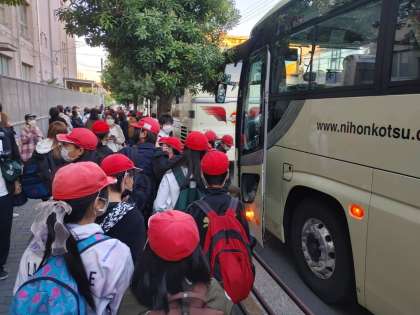 秋らしく澄み切った好天に恵まれた、6年生の広島方面への修学旅行。元気いっぱいの子どもたちを乗せたバスは、ほぼ定刻どおりに出発しました。お見送りに来ていただいた保護者の方々、ありがとうございました。