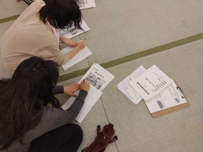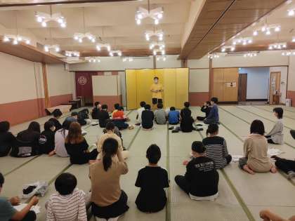 班長会議を行なっています。明日の連絡などを聞いています。班のメンバーに伝えられるようにしっかりとメモをとっています。