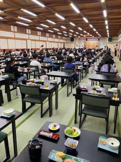 おはようございます。現地天候は薄曇りのようですが、子どもたちは元気に過ごしています。朝食後、閉舎式を行いました。予定通りに次の目的地、姫路セントラルパークに向かいます。