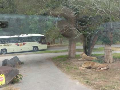 トラやライオンなどの肉食動物エリアを過ぎ、キリンやシマウマなどの草食動物エリアに入りました。間近で見る動物たちに興味津々の様子です。