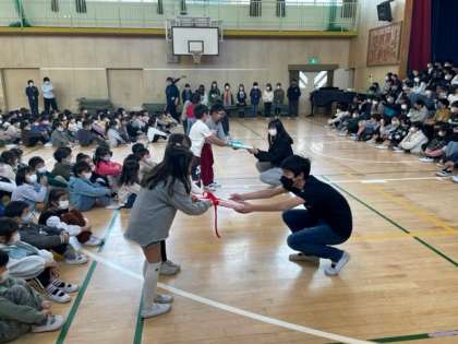 去る3月8日(水)に児童会主催の「6年生を送る会」を行いました。新型コロナウイルス感染症の影響で、1学年ずつ、6年生への送別を行いました。それぞれの学年が感謝とお祝い、そして寂しい気持ちを込めた言葉や歌、演奏を行いました。6年生は、対面する学年が上がっていくにつれて、自分たちの成長を感じていたようです。
