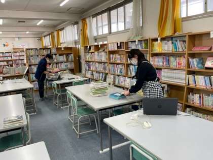 28日から3日間、学校司書さんと図書ボランティア(とっしょさん)の方々が、学校図書館の蔵書点検をしてくださいました。毎年、図書館の本を1冊ずつ台帳と照合したり、傷み具合などを点検したりと大忙しです。新年度、みなさんが気持ちよく図書館を使えるように、との心づかいがうれしいですね。