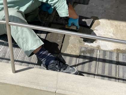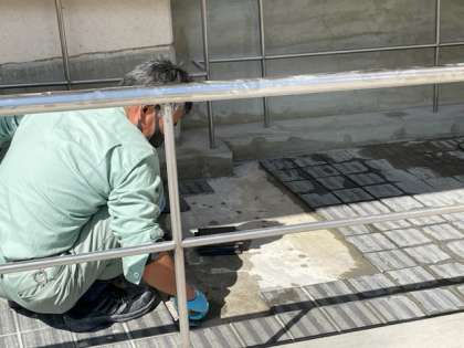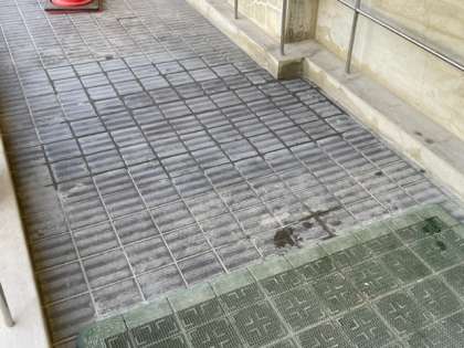新年度を前に、管理作業員さんが1年生の教室前に続くスロープの補修工事をしてくださいました。基礎からはがれて浮いているタイルを外し、1枚ずつ元に戻していく地道な作業ですが、子どもたちの安全には欠かせないものです。