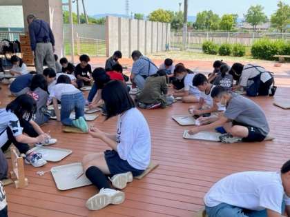 今日は6年生が「池上曽根史跡公園・弥生文化博物館」に行きました。2クラスずつが午前と午後に分かれて交代で博物館見学と学習館での勾玉作りを行いました。博物館では、みんなで協力して竪穴式住居を組み立てたり、館内を見学しながらワークシートに取り組んだりしました。学習館では「勾玉作り」に挑戦しました。一生懸命に石を削り、各自思い思いの勾玉を作り上げ、とてもいい表情で出来上がった勾玉を首から下げていました。
