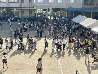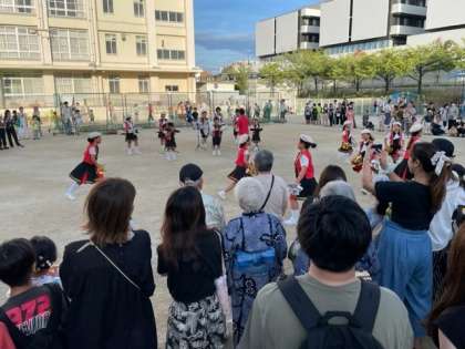 第8回南住吉ええまちフェスタが、3年ぶりに本校を会場に開催されました。運動場にはたくさんの模擬店が出店され、どのお店も早くから賑わい、早々に売り切れるお店が続出でした。子ども会の鼓笛隊の演奏や花火大会、盆踊りも行われ、たくさんの方が夏の夕べのひと時を楽しんでおられました。特に、花火大会では、打ちあがるたびに歓声が上がり、とても盛り上がっていました。
