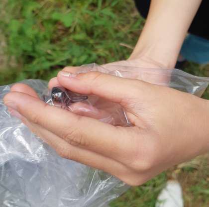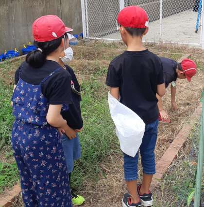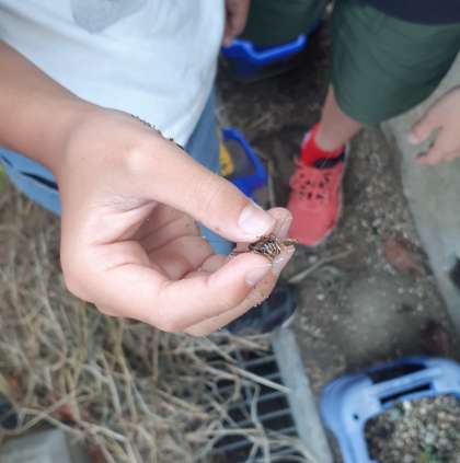 中には秋の昆虫コオロギを見つけ、素手で上手につかまえて楽しむ姿も見られました。