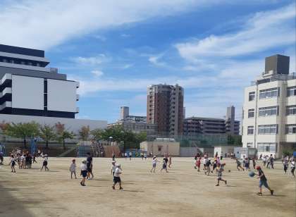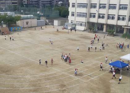 休み時間にも、トラックを使って楽しそうに遊ぶ児童も見られます。