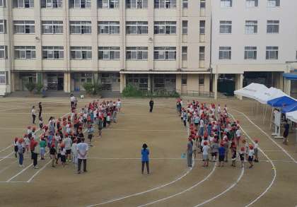 本校は児童数が多く、一斉に集まって活動することができないため、今回は各学年3組の児童がたてわり班になって参加しました。