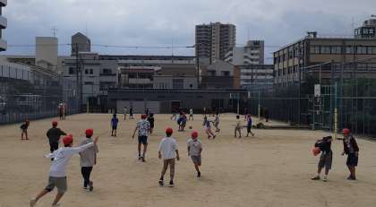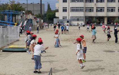 日中もめっきり涼しくなり、気持ちの良い風が吹く中、なわとびに遊具にボール遊びにと、子どもたちは元気に運動場で遊んでいます。