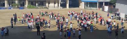 集会委員会児童の企画・進行のもと、爽やかな朝の空気の中、子どもたちは楽しくゲームを楽しんでいました。