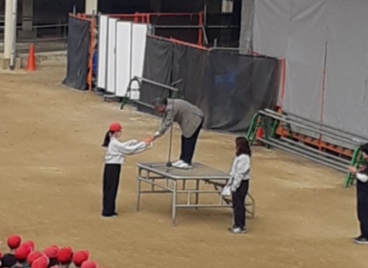 本日の児童朝会では、夏休みの課題について入賞した児童への表彰を行い、表彰状などを手渡しました。