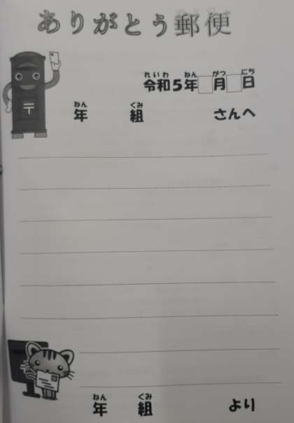 異学年間や他のクラスとの手紙のやり取りを通して、思いやりの気持ちをもったり、あたたかい心の交流を図ったりすることを目標に取り組みます。