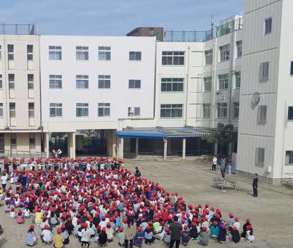 6年生が1〜5年生に対して、朝会の並び方などお手本を上手に示していました。