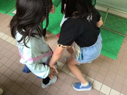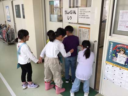 2年生が1年生を連れて、学校を案内しながら探検します。