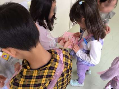 2年生のお姉さんやお兄さんがシールを貼ってくれます。
