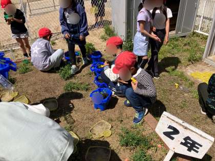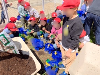 「めっちゃトマトの匂いする」「てんとう虫がついてる」という声で他の子も一緒に確認します。