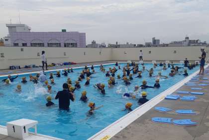 高い湿度の中、子どもたちはプールでの水泳学習を頑張りました。