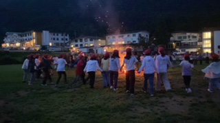 夕食、キャンプファイアーに続いてナイトハイクを終えて、宿に帰ってきました。この後、お風呂に入ります。