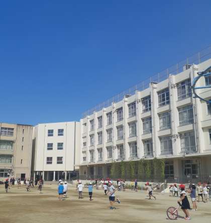 雲一つない青空のもと、子どもたちは十人十色いろいろな休み時間を過ごしています。