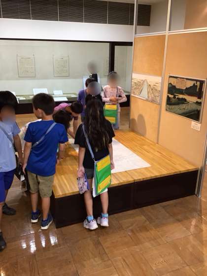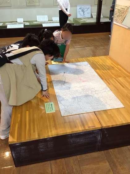 資料館を見学中 今日は大学生の方が、説明してくれています。