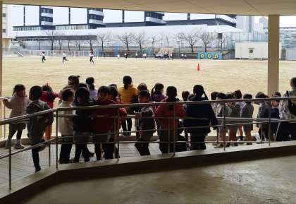 子どもたちは、運動場の大きさや小学生の活動の様子などを見て、小学校と幼稚園の違いを知ることができました。