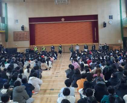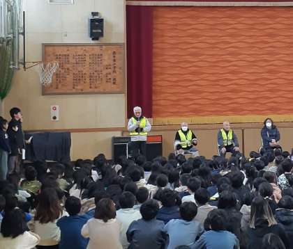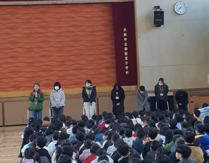 本日は、登下校の見守りや図書の学習活動でお世話になっている、パトレンジャーととっしょさんの皆さんの皆さんにお越しいただき、集会を開きました。