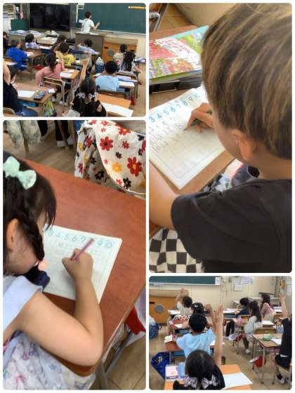 授業では先生が「10をつくるには3と何かな?」と問いかけ、子どもたちは元気に答えます。どんどん出てくる答えに教室は大盛り上がり。