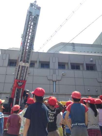 消防車や救急車、実際に使用している道具などの説明を聞きました。また、みんなの質問にもていねいに応えていただきました。