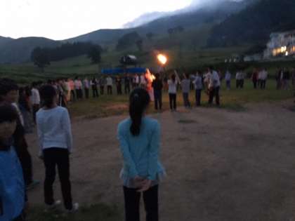 1日目の夜は、みんなでキャンプファイヤーを囲んで、楽しいひと時を過ごしました。