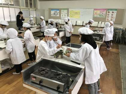大阪しろなの美味しい食べ方を教えていただき、調理実習を行いました。