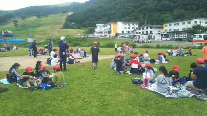 ハチ高原に無事到着しました。お弁当を食べています。雲が出てきて少し涼しいです。