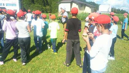 暑かった登山が終わり、おやつのスイカをいただきました。