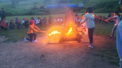 キャンプファイヤーをみんなで囲み、思い出に残る楽しい時間を過ごしました。