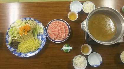 2日目の夕食は、豚しゃぶです。今日も一日いろいろな活動をがんばったので、お腹がすきました!