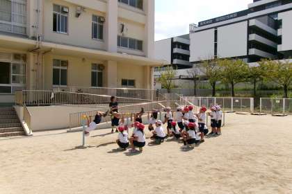 コツをつかむと、「見て見て!できたよ!」「もう1回やってみる!」と、笑顔で何度も挑戦する姿が見られました。腕の力だけでなく、体をまっすぐに保つバランス感覚も大切です。楽しみながら、体力や集中力をしっかりと育んでいます。