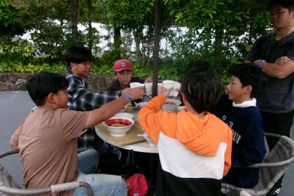 午前の班活動を楽しんだあとは、各班ごとに園内で昼食をとりました。