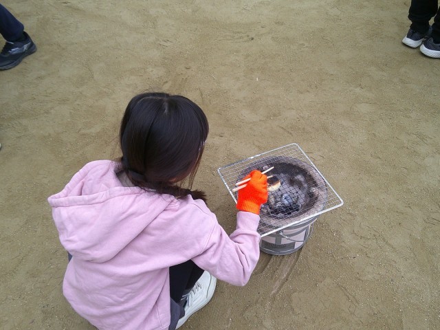 日本の昔ながらの生活に触れながら、七輪を使っておもちを焼く活動を通して、火の扱い方や安全な使い方について学びました。