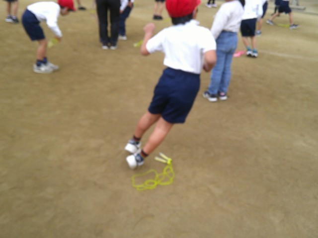 まずは縄に慣れる運動から始め、前跳びや後ろ跳びに挑戦しました。