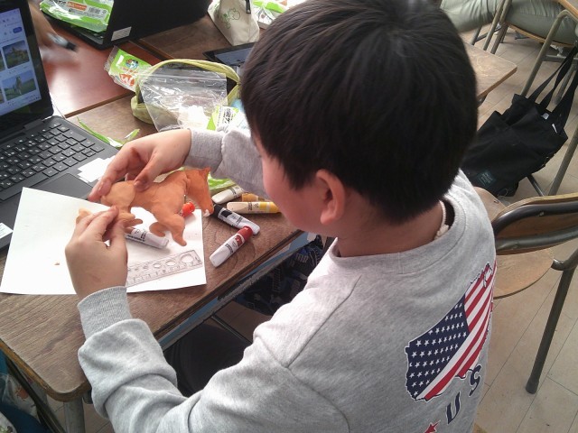 5年生は図工で、紙粘土を使って今年の干支「馬」を制作しました。