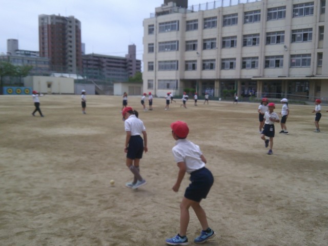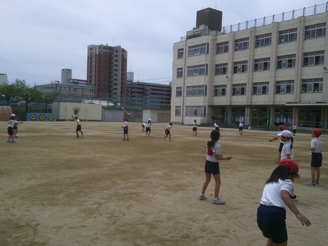 3年生は体育でボール投げの練習に取り組みました。