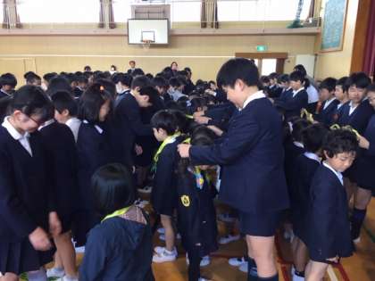1年生は、元気な声で、みんなにあいさつすることがきました。